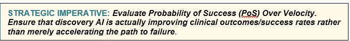 This quadrant exposes outcome trust and regulatory trust as binary gates. One can’t partially approve a drug. Until these milestones are cleared, the category remains “emerging” regardless of preclinical speed. It also highlights data integrity trust — 68% of CDIOs cite poor data quality as the #1 failure cause (ZS Associates, 2025).