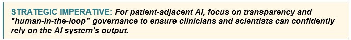 Ambient scribes validate a critical principle: patient-adjacent AI can earn trust when the human-in-the-loop is genuine, not performative. The clinician reviews, edits, and signs. This maps to governance trust (clear ownership) and transparency trust (visible, editable output). This is the proof of concept for what high-trust, patient-facing AI looks like.